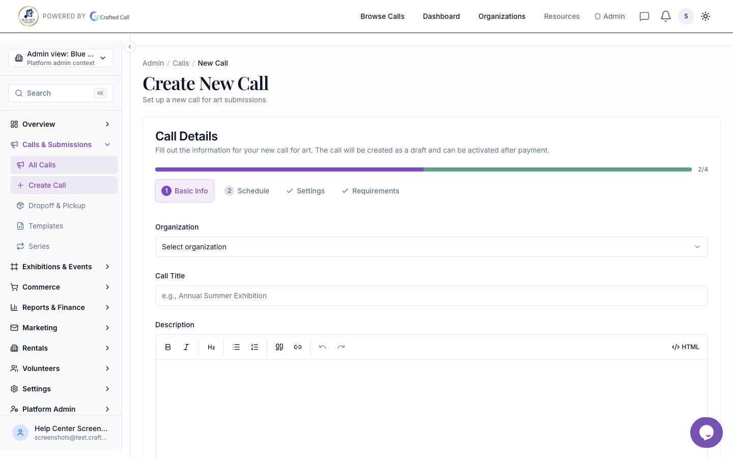 When setting up a call for artists, you control what information you collect, how much work artists can submit, and what fees apply. This guide walks you through every configuration option to help you design a call that matches your gallery's needs.