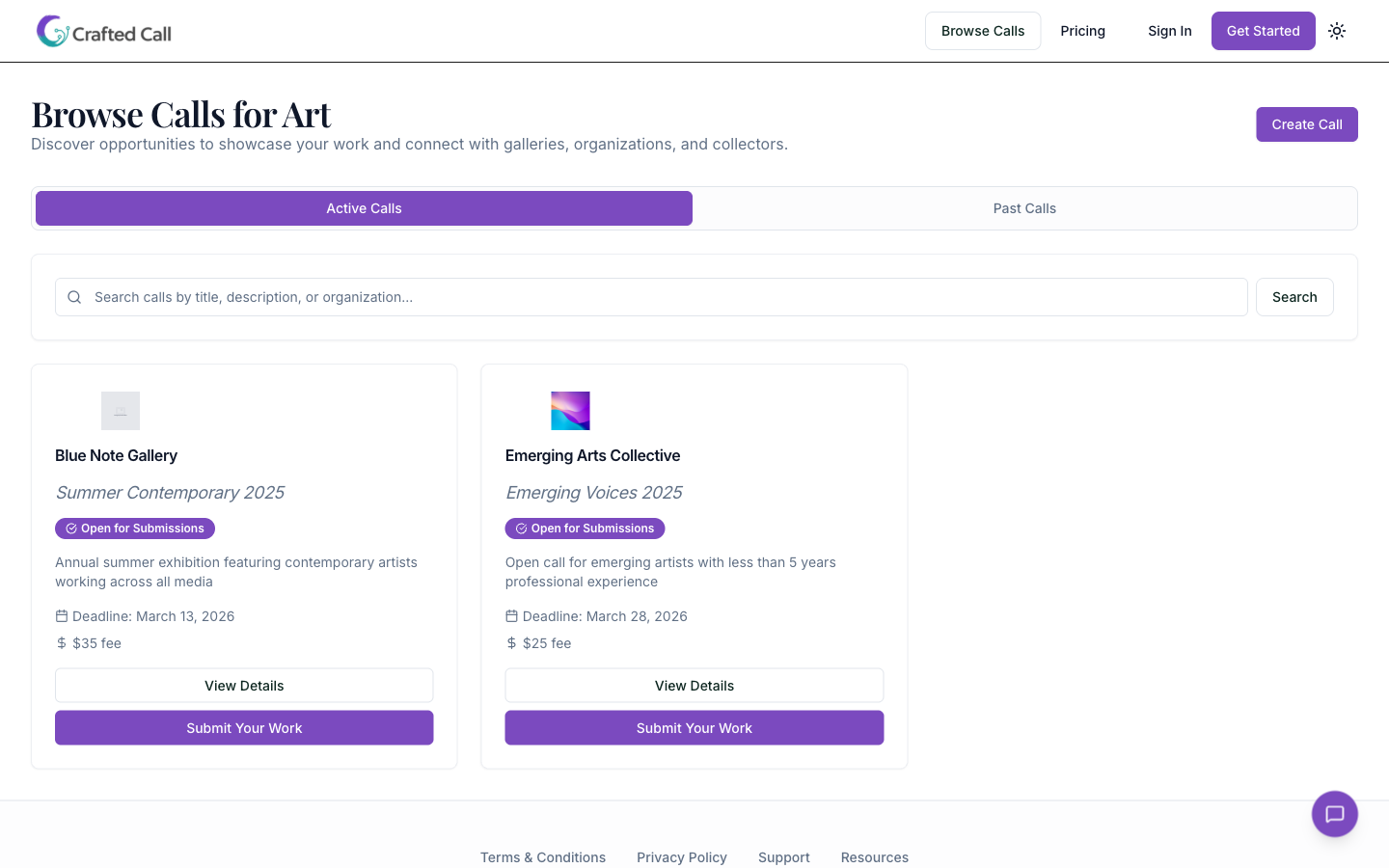 Finding the right calls for your work is one of the most important parts of your Crafted Call experience. Whether you're looking for gallery exhibitions, residencies, or competitions, Crafted Call makes it easy to discover opportunities that match your practice.